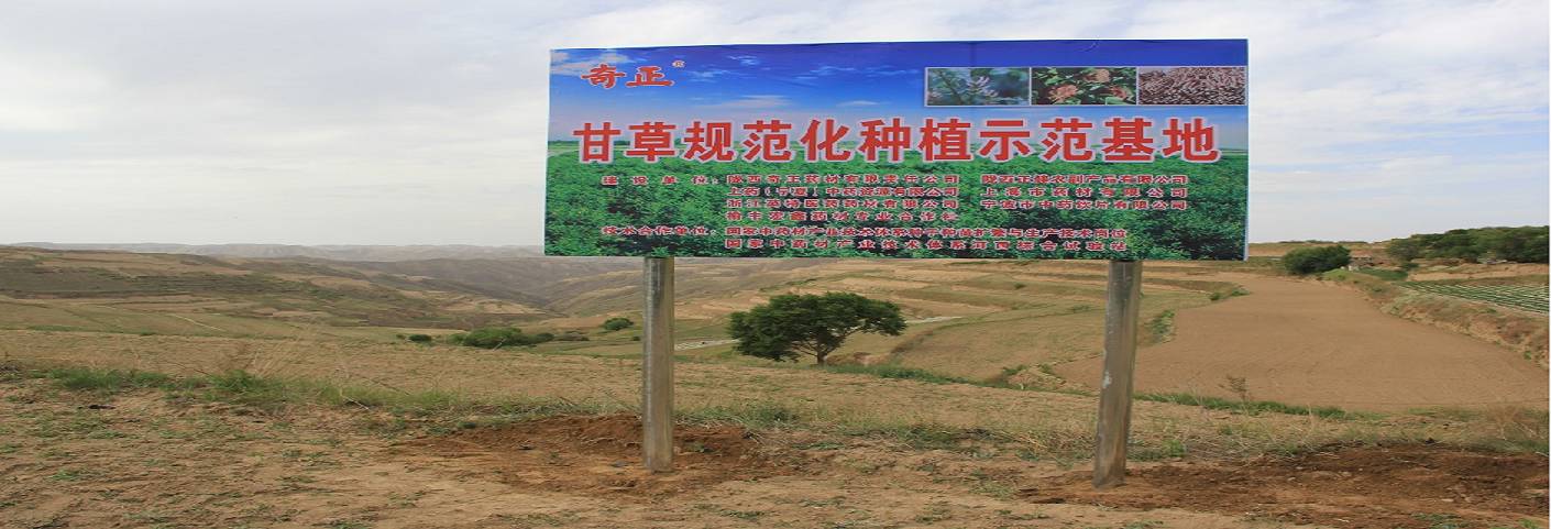 甘草基地位于甘肃省兰州市榆中县北山地区的贡井乡,基地采用“公司+合作社+农户”模式,公司统一种苗、统一田间管理、统一采收、统一加工储藏。从2010开始与榆中宏鑫药材专业合作社开展合作,进行甘草基地建设,现已建成千亩连片甘草基地12个,面积2万余亩,年产甘草鲜草2000余吨,并辐射带动北山地区种植甘草等中药材10万余亩。