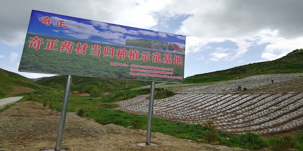 公司当归基地位于岷县清水镇鸦乌沟,为岷县岷归的核心产区,基地建设规模2000亩,年产当归500余吨。该地区为传统农耕区,无工矿企业,水土无污染,通过第三方环境评测,当归基地土壤、大气、灌溉水质等环境因子均符合国家相关标准。公司基地平均海拔2900m,年平均气温5.3℃,川区6.1℃,山区4.5℃,年平均降水量592mm,日照时数2394.3h,全年无霜期118天。土壤为黑土,土质肥沃,腐殖质含量高,排水良好,非常适宜当归生长,产出当归价格要高于市场价格3~4元/kg,是生产当归的优质产区。