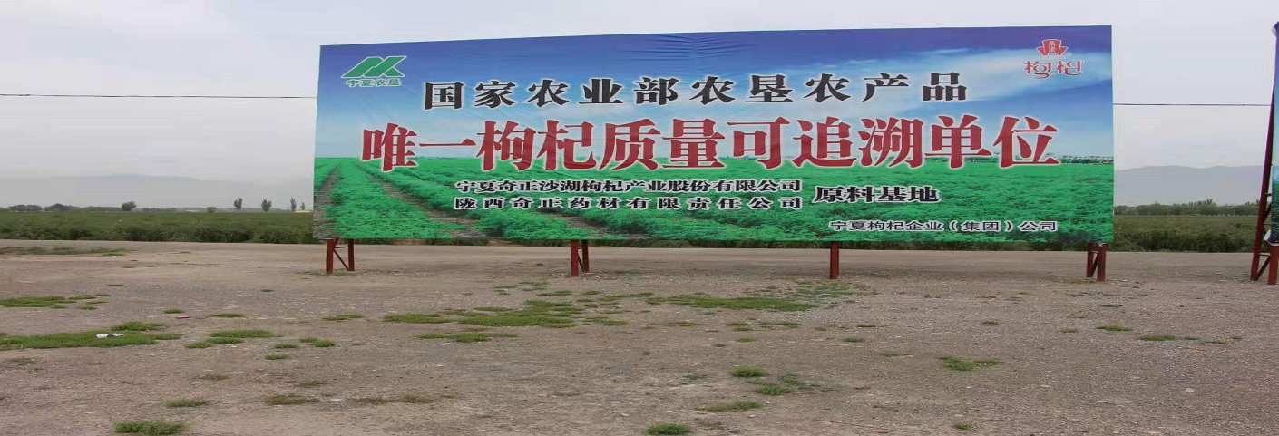 枸杞基地位于宁夏回族自治区银川市西夏区南梁农场和甘肃省靖远县靖安乡。公司从2012年开始和当地种植大户签订种植采购合同,采用“公司+合作社(种植大户)+农户”的模式,基地建设规模5500亩,枸杞农药残留控制达到A级绿色食品要求。并通过中国绿色食品认证,公司带动农户实行枸杞标准化生产,促进枸杞产业健康发展,为企业提供无公害、无污染、高品质的优质原料。
